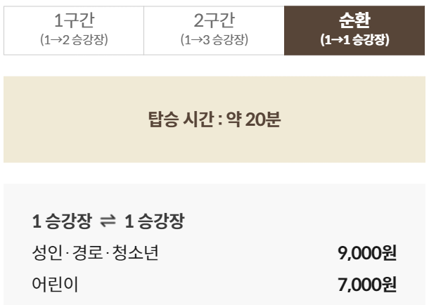 - 모노레일 요금: 구간별 상이 위 이미지 참조